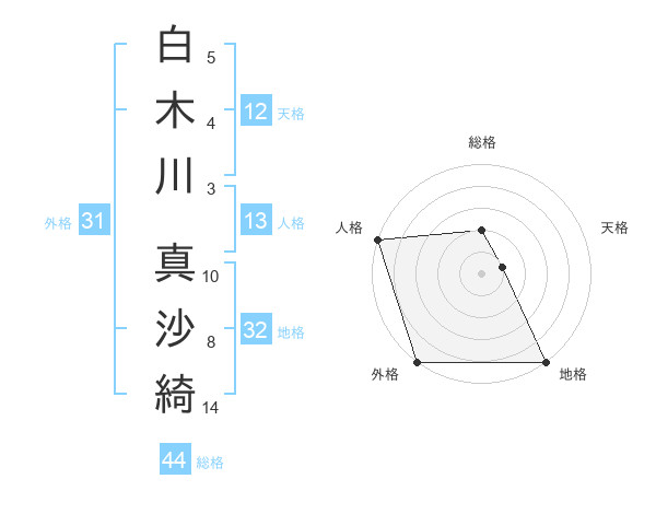 白木川 真沙綺さんを姓名の画数から五運を鑑定