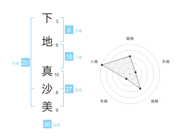下地 真沙美さんを姓名の画数から五運を鑑定
