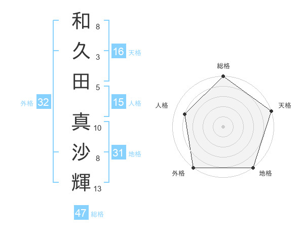 和久田 真沙輝さんを姓名の画数から五運を鑑定