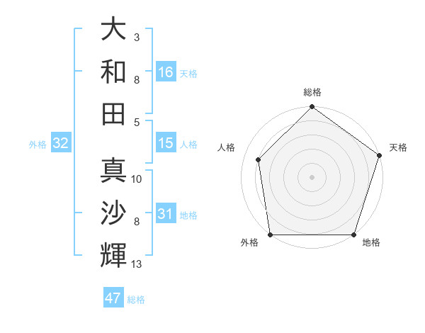 大和田 真沙輝さんの外格は32画の5点!