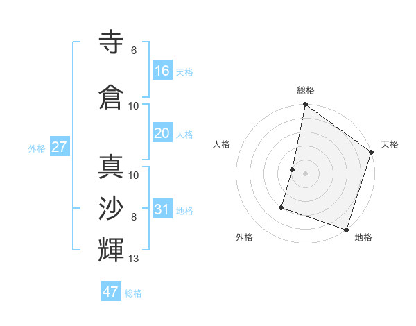 寺倉 真沙輝さんの地格は31画の5点!