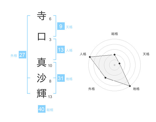 寺口 真沙輝さんの総格は40画の2点!