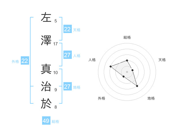 左澤 真治於さんを姓名の画数から五運を鑑定