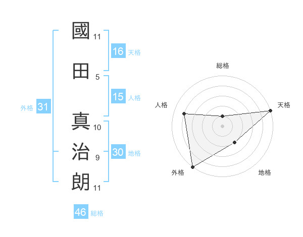 國田 真治朗さんを姓名の画数から五運を鑑定