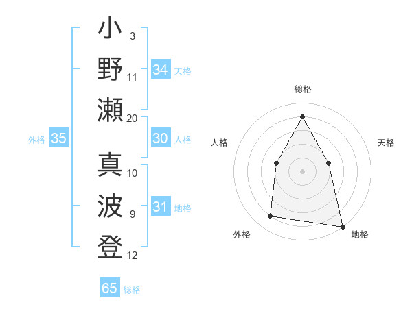 小野瀬 真波登さんの総格は65画の4点!