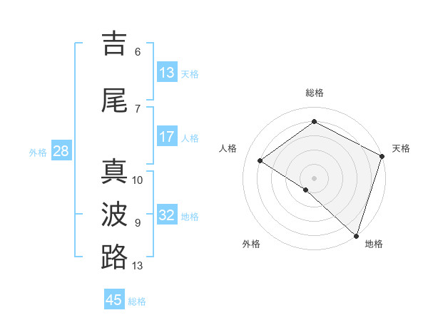 吉尾 真波路さんを姓名の画数から五運を鑑定