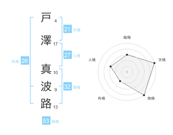 戸澤 真波路さんの天格は21画の5点!