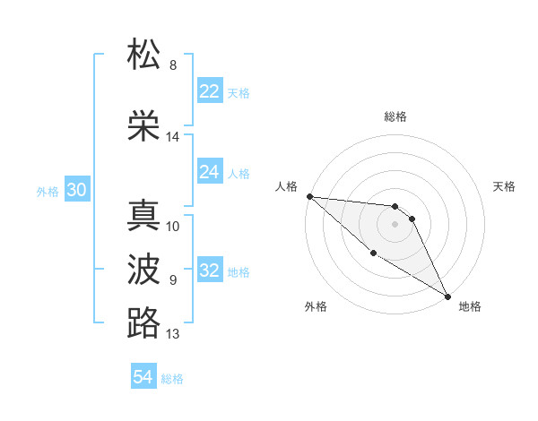 松栄 真波路さんを姓名の画数から五運を鑑定