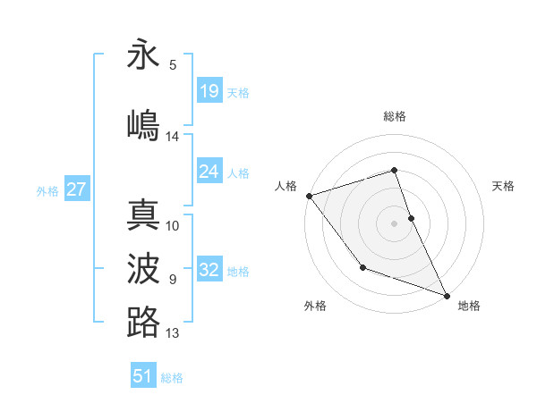 永嶋 真波路さんを姓名の画数から五運を鑑定