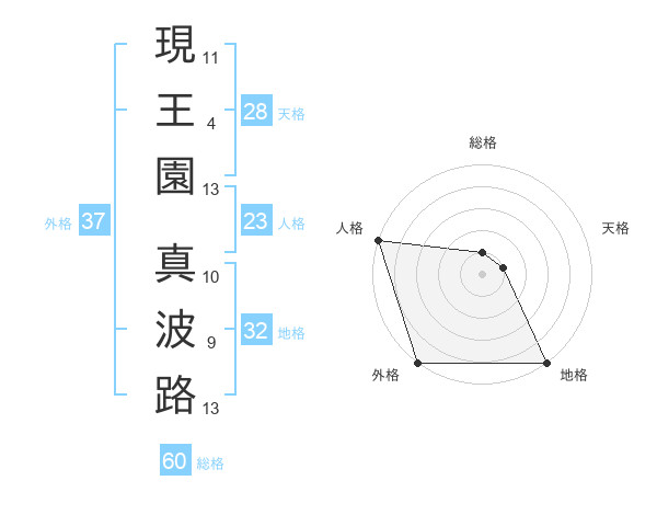 現王園 真波路さんを姓名の画数から五運を鑑定