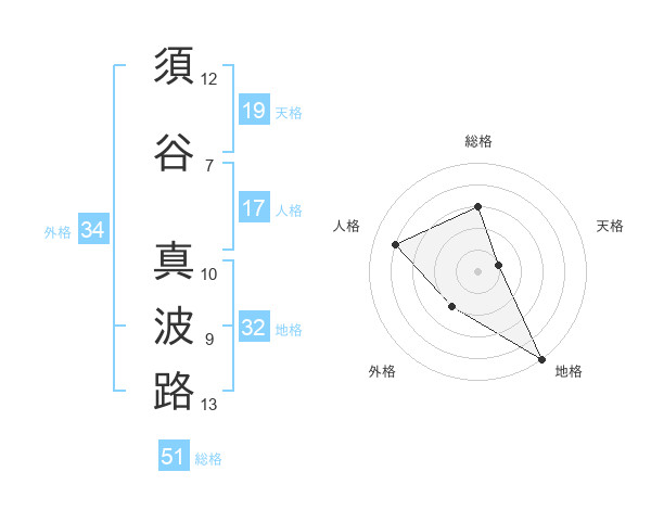 須谷 真波路さんを姓名の画数から五運を鑑定