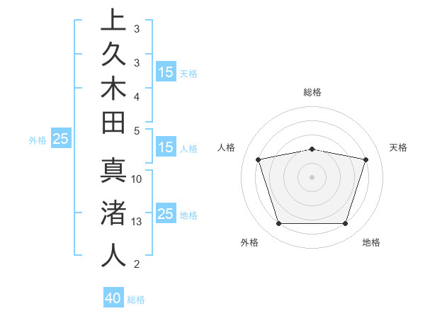 上久木田 真渚人さんを姓名の画数から五運を鑑定