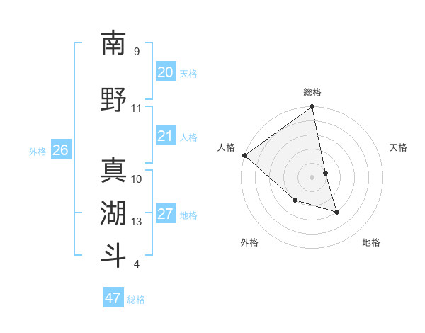 南野 真湖斗さんの総格は47画の5点!