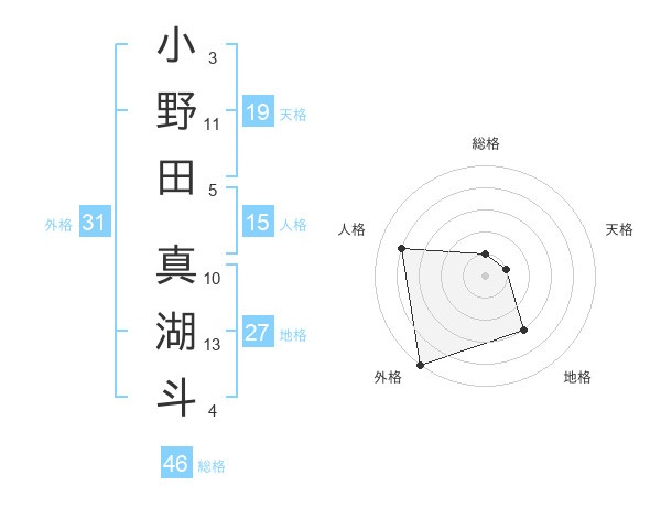 小野田 真湖斗さんを姓名の画数から五運を鑑定