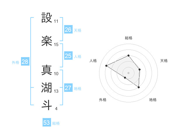設楽 真湖斗さんの天格は26画の2点