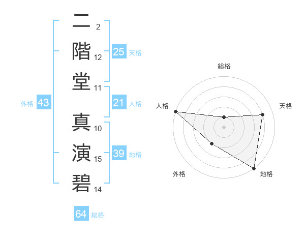 二階堂 真演碧さんの地格は39画の5点!