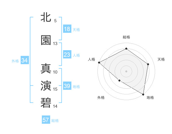 北園 真演碧さんを姓名の画数から五運を鑑定