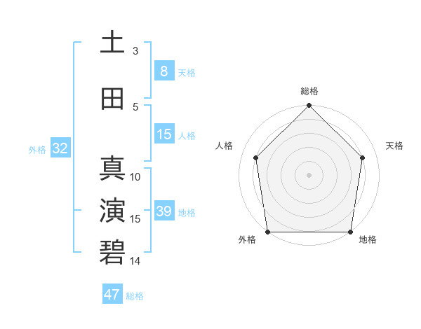 土田 真演碧さんの総格は47画の5点