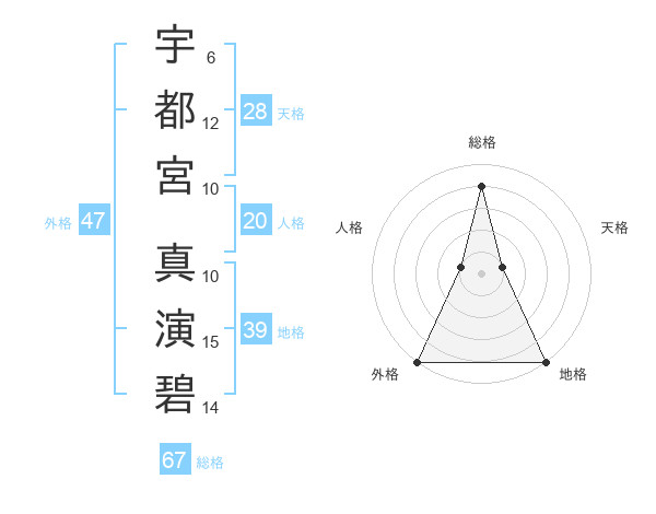 宇都宮 真演碧さんを姓名の画数から五運を鑑定