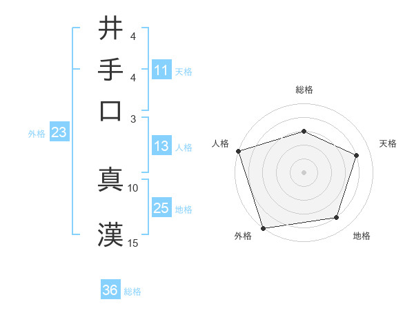 井手口 真漢さんの天格は11画の4点!