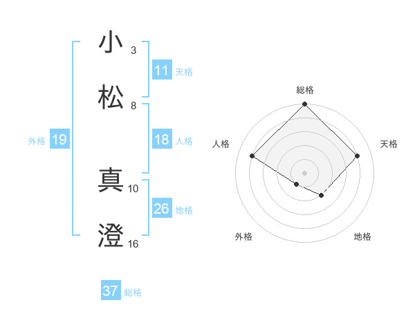 小松 真澄さんの総格は37画の5点!