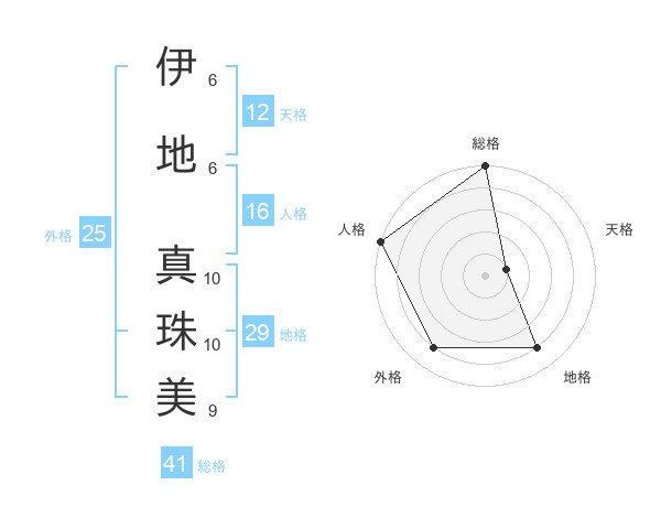 伊地 真珠美さんを姓名の画数から五運を鑑定