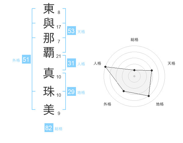 東與那覇 真珠美さんを姓名の画数から五運を鑑定