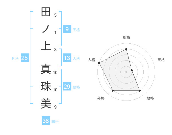 田ノ上 真珠美さんの総格は38画の4点!