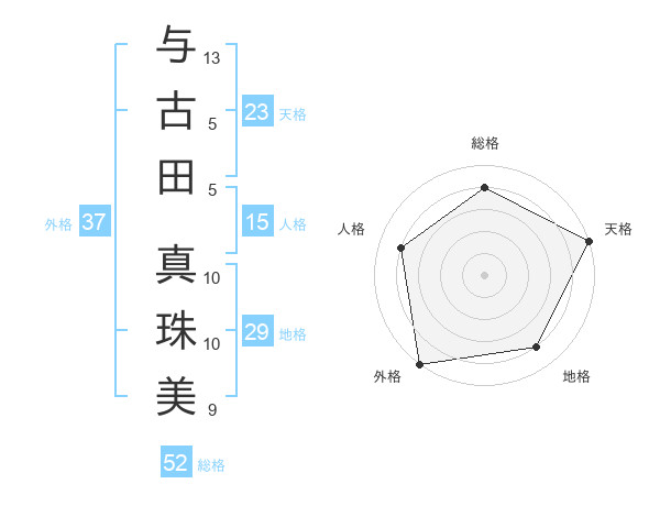 与古田 真珠美さんを姓名の画数から五運を鑑定