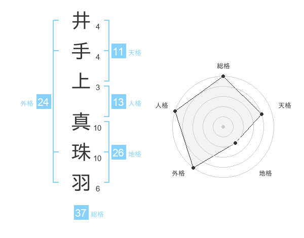井手上 真珠羽さんを姓名の画数から五運を鑑定