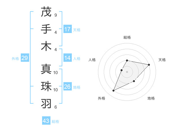 茂手木 真珠羽さんを姓名の画数から五運を鑑定