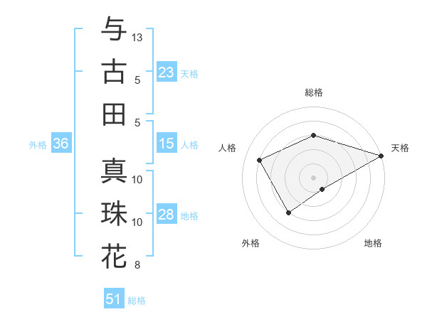 与古田 真珠花さんを姓名の画数から五運を鑑定