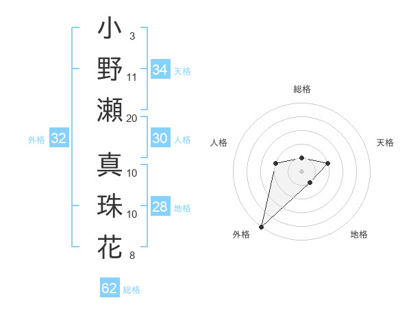 小野瀬 真珠花さんの外格は32画の5点