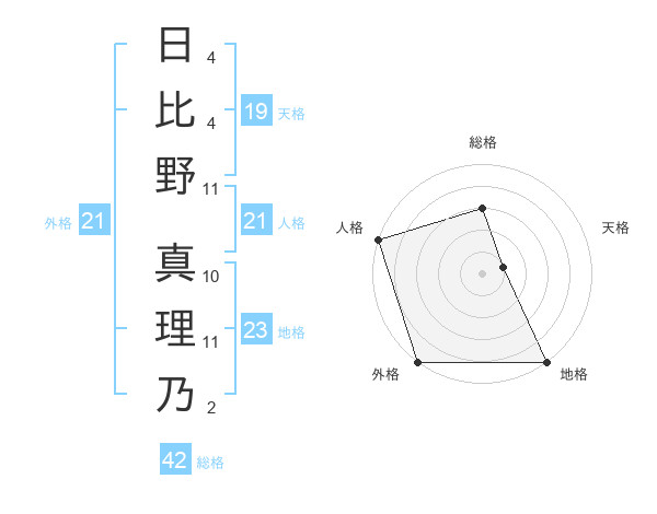 日比野 真理乃さんを姓名の画数から五運を鑑定