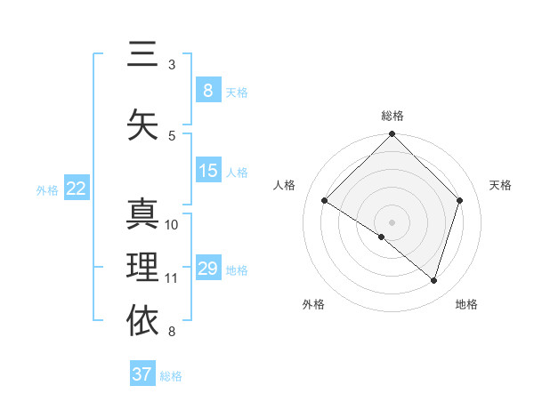 三矢 真理依さんの外格は22画の1点!