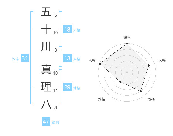 五十川 真理八さんを姓名の画数から五運を鑑定