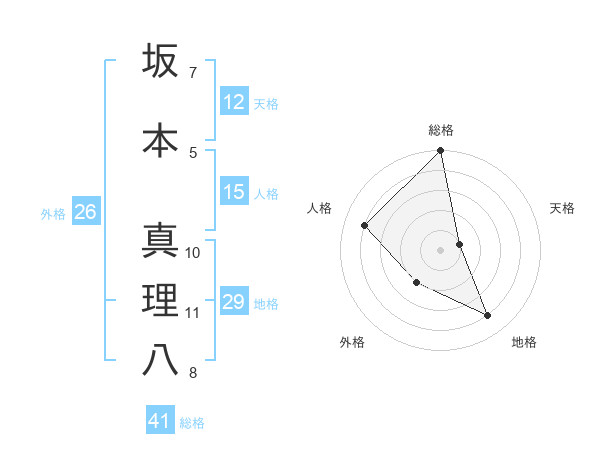 坂本 真理八さんの外格は26画の2点!