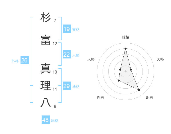 杉富 真理八さんの総格は48画の4点!