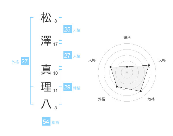 松澤 真理八さんを姓名の画数から五運を鑑定