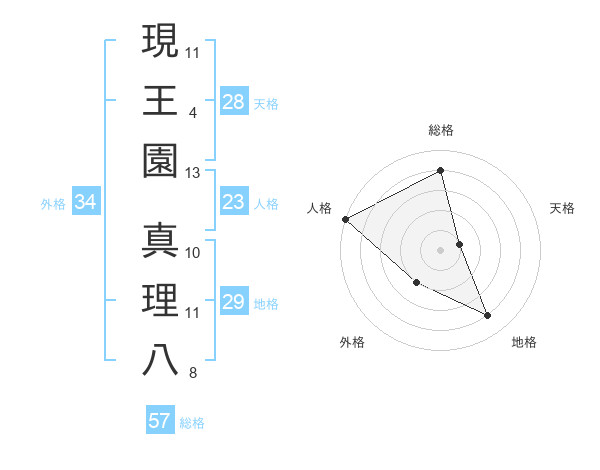 現王園 真理八さんを姓名の画数から五運を鑑定