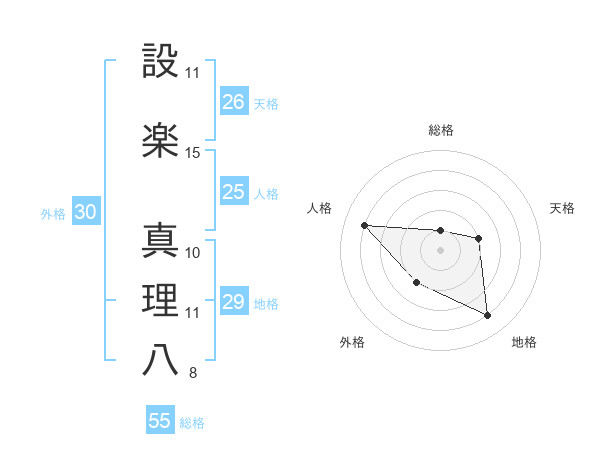 設楽 真理八さんの外格は30画の2点!