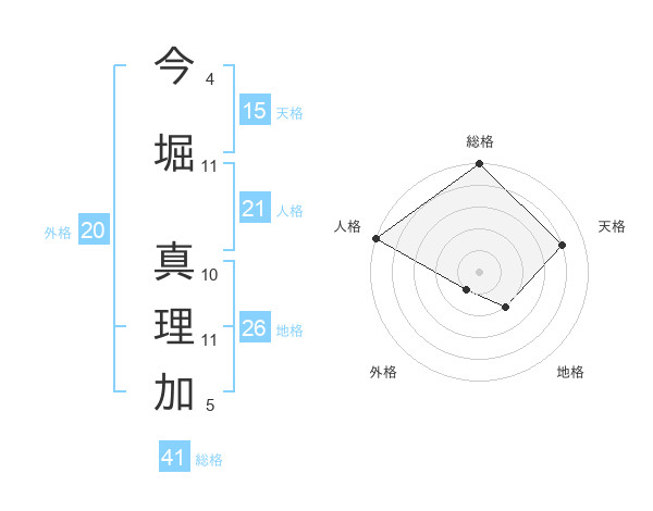 今堀 真理加さんを姓名の画数から五運を鑑定