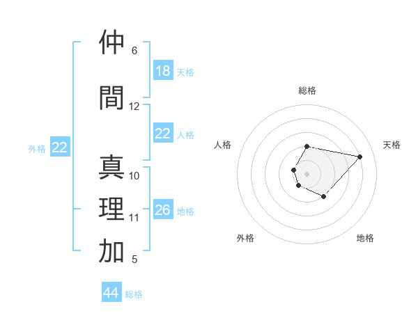 仲間 真理加さんを姓名の画数から五運を鑑定