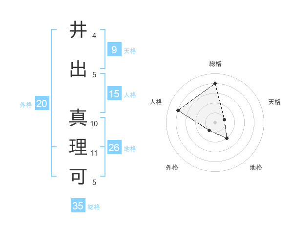 井出 真理可さんの総格は35画の4点!