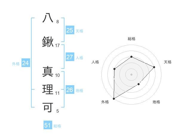 八鍬 真理可さんの総格は51画の3点!