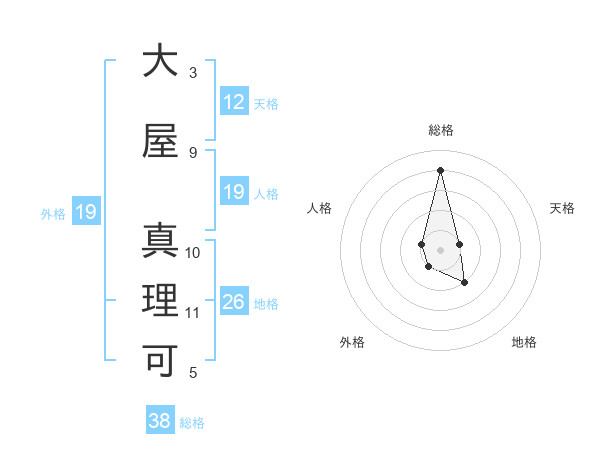 大屋 真理可さんを姓名の画数から五運を鑑定