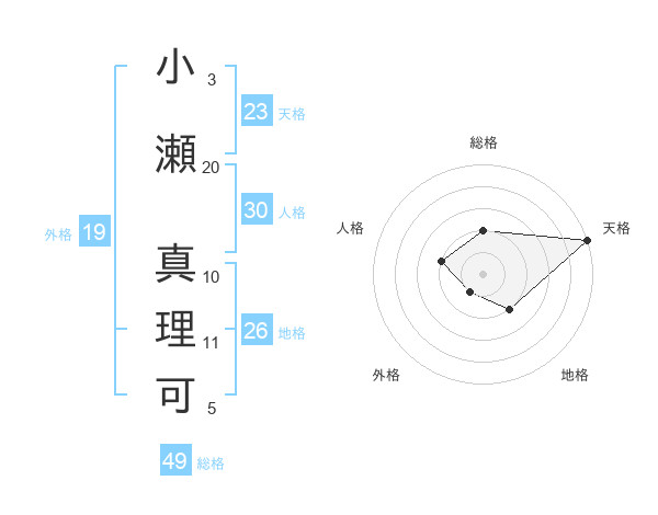 小瀬 真理可さんの天格は23画の5点!