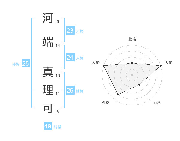 河端 真理可さんの天格は23画の5点!