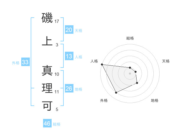 磯上 真理可さんの天格は20画の1点!