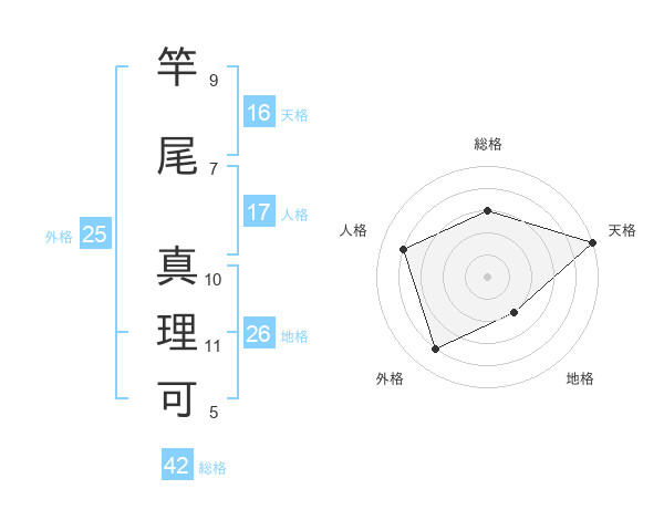 竿尾 真理可さんの天格は16画の5点!